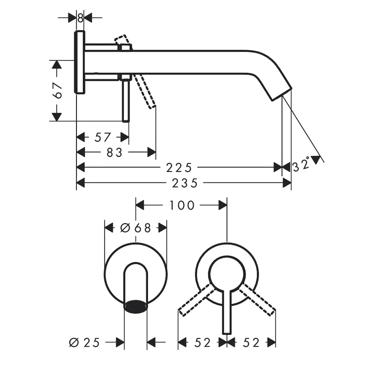 Змішувач для умивальника Hansgrohe Tecturis S 225 прихованого монтажу, чорний матовий (73351670)
