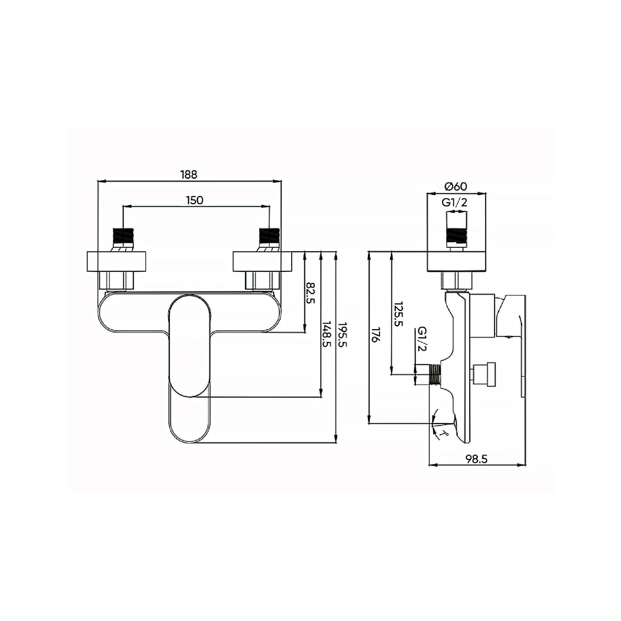 Змішувач для ванни FADO Nemi настінний, хром + ручна лійка (MIX0802C)