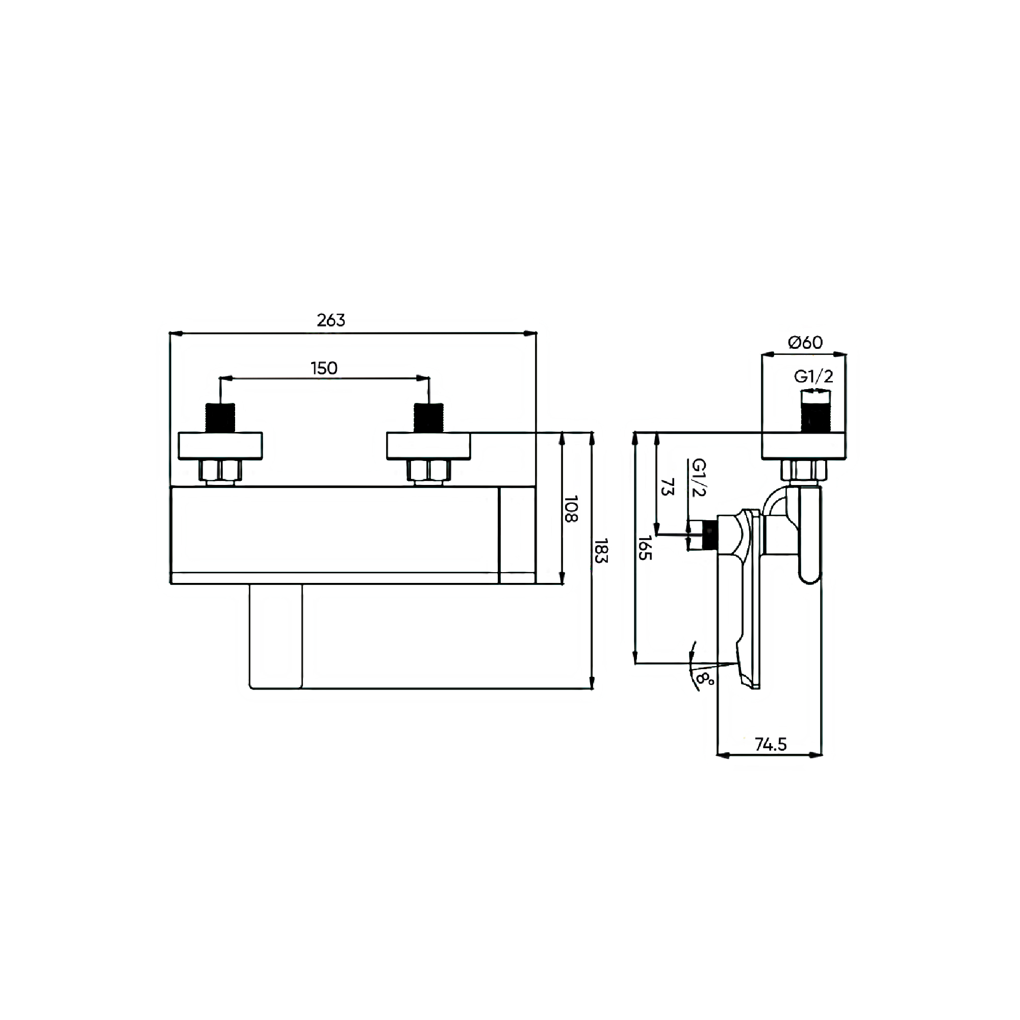 Змішувач для ванни FADO Tokio настінний, графіт + ручна лійка (MIX0402GG)