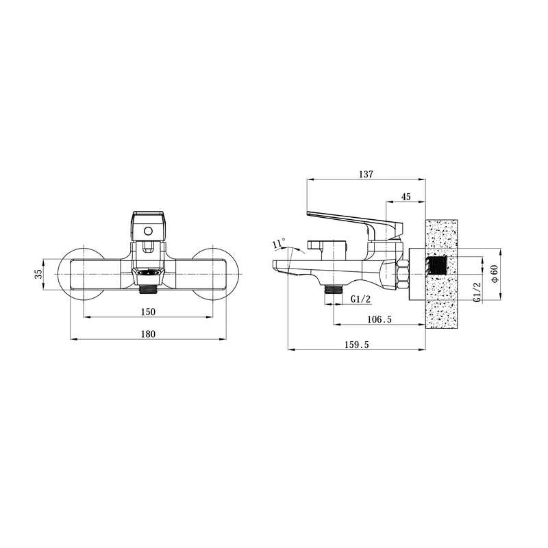 Змішувач для ванни Mixxus Premium Ares 009 одноважільний, хром + ручна лійка (MI8258)