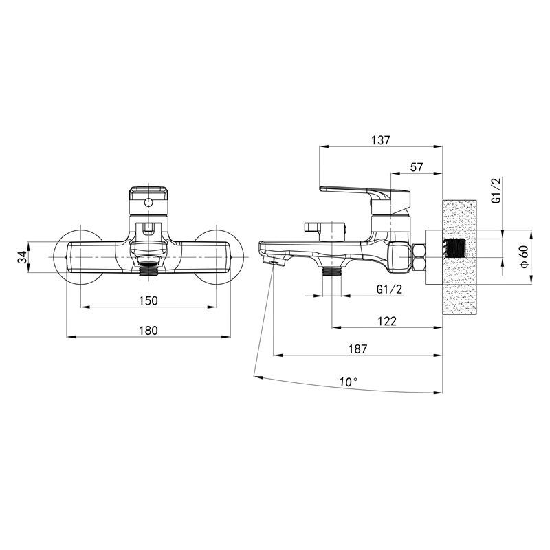 | Вид монтажу змішувача | Настінний |