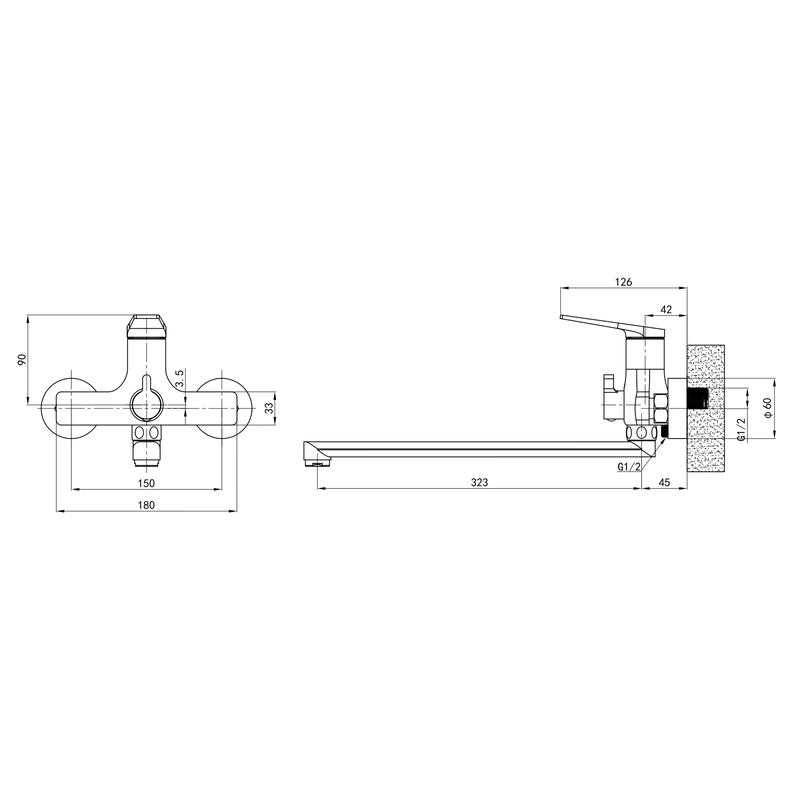 | Вид монтажу змішувача | Настінний |