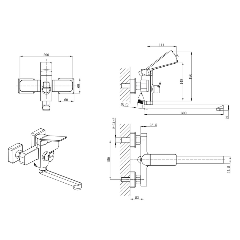| Комплектація | Змішувач, Шланг 150 см, Ручна лійка, Чашки, Ексцентрики, Гумові прокладки, Тримач для лійки |