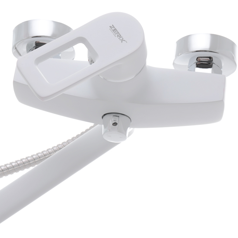 Змішувач для ванни Zerix Z2230-7 одноважільний, білий + ручна лійка (ZX0359)